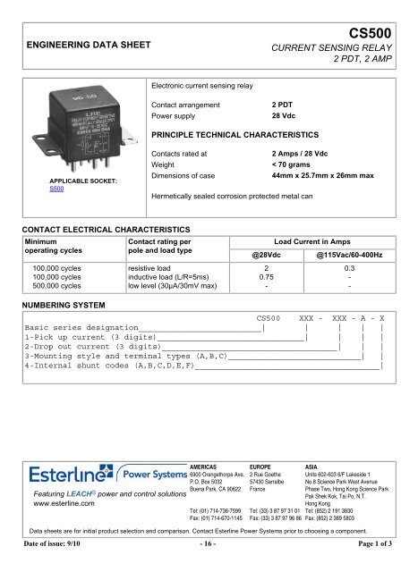 We have almost everything on ebay. Voltage sensing relay, 2 pdt / 2 amp relais de detection de tension, 2 rt / 2 a 3 / 3 schematic diagram and terminal layout schemas general characteristics caracteristiques generales notes remarques 1. Check out leach relays on ebay. Polarized, magnetic latching hermetically sealed relay. Relays with a mounting are compatible with socket families s 400, sf400, sc40* Aerospace / aéronautique military / militaire: Electromechanical relays are electrically operated switches used to isolate circuits or batteries. Leach international corporation manufactures electrical devices. Advanced technology for rail applications Leach international corporation has received several nadcap certifications and certification to quality management system standards iso 9001:2015/as/en/jisq 9100:2016 from det norske veritas certification, inc., one of the world's leading certification bodies/registrars offering management systems certification services for public health safety. Leach international europe is the leading manufacturer in power switching solutions for the aerospace and defense market. A variety of sockets complement the miniature and subminiature relay lines. Esterline power systems capabilities :